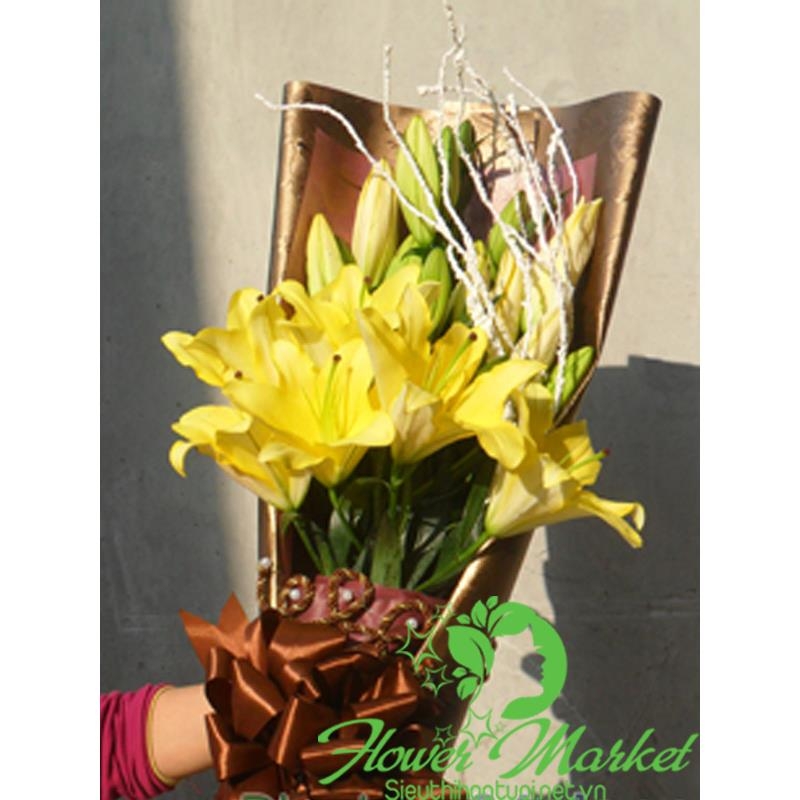 Bó hoa tặng sinh nhật với hoa chủ đạo là hoa ly kết hợp với hoa lá phụ cùng phụ kiện cao cấp kèm thông điệp yêu thương gởi đến những người thân yêu nhất.