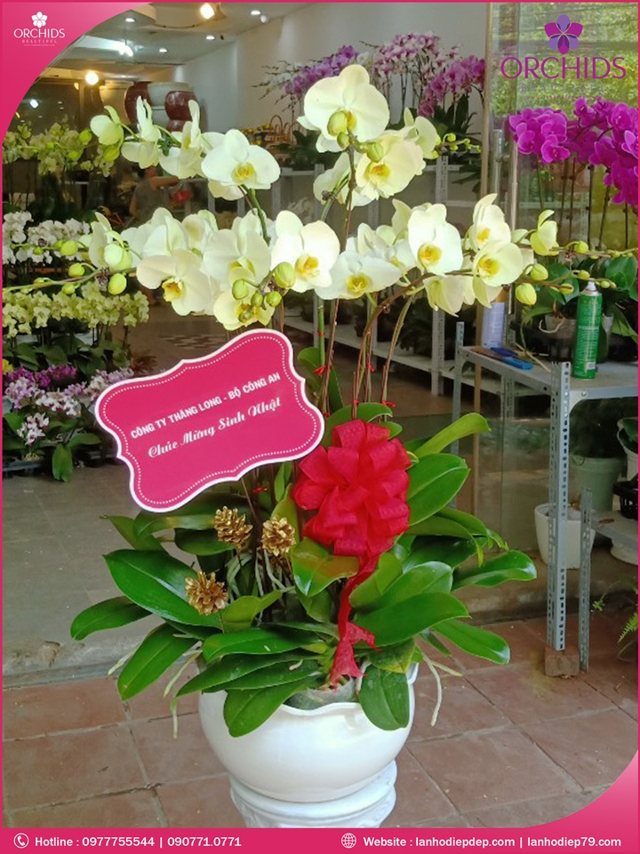 Chậu hoa lan hồ điệp xanh táo 10 cành LOVE-LHD48