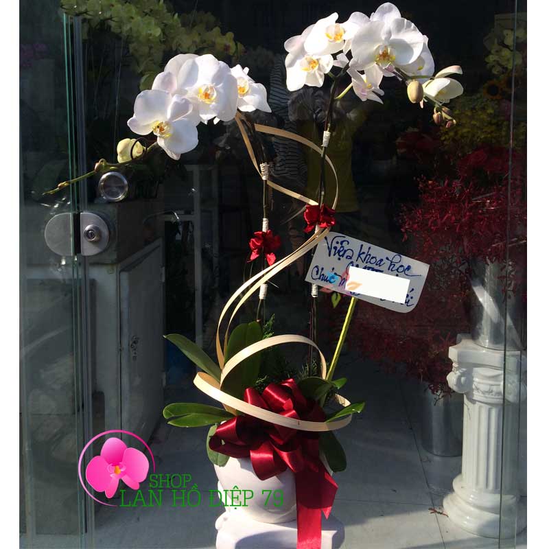 Chậu lan hồ điệp đẹp được phối ghép 2 cành hoa lan màu trắng với thiết kế sang trọng và đẹp mắt sẽ là món quà thật ý nghĩa để tặng cho bạn bè, người thân, khách hàng, đối tác... Sản phẩm rất phù hợp đặt ở bàn làm việc, trước sảnh văn phòng công ty, nhà hàng, khách sạn, cửa hàng. Ngoài ra hoa lan hồ điệp còn được tặng vào những dịp chúc mừng khai trương, sinh nhật, khánh thành, hội nghị, thăng chức, mừng thọ, ngày cưới, kỉ niệm thành lập công ty...