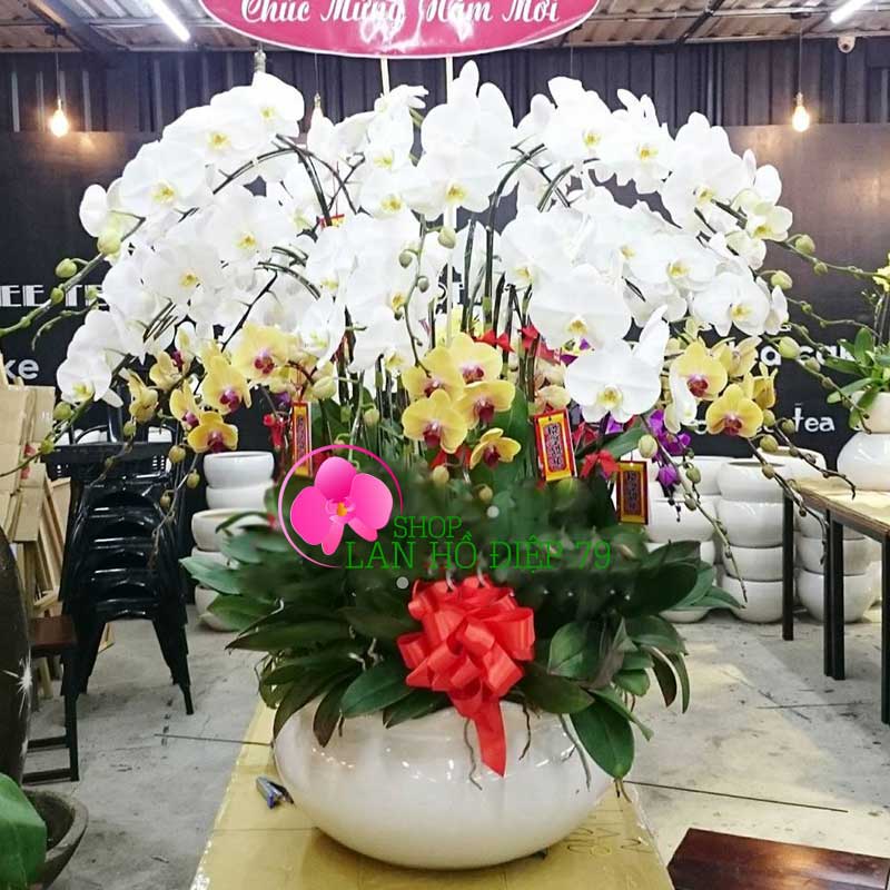 Chậu lan hồ điệp đẹp được phối ghép 14 cành hoa lan trắng vàng với thiết kế sang trọng và đẹp mắt sẽ là món quà thật ý nghĩa để tặng cho bạn bè, người thân, khách hàng, đối tác... Sản phẩm rất phù hợp đặt ở bàn làm việc, trước sảnh văn phòng công ty, nhà hàng, khách sạn, cửa hàng. Ngoài ra hoa lan hồ điệp còn được tặng vào những dịp chúc mừng khai trương, sinh nhật, khánh thành, hội nghị, thăng chức, mừng thọ, ngày cưới, kỉ niệm thành lập công ty...
