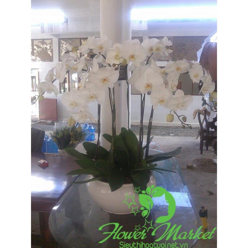 Chậu lan hồ điệp được ghép 9 cành với nhau kết hợp với chậu gỗ hoặc chậu sứ kèm thông điệp yêu thương gởi đến những người thân yêu nhất mừng ngày sinh nhật, mừng thọ, tân gia hay mang thông điệp ý nghĩa chúc mừng thịnh vượng đến cho doanh nghiệp, đối tác, khách hàng, bạn bè, đồng nghiệp trong ngày khai trương cửa hàng, công ty, nhà hàng...