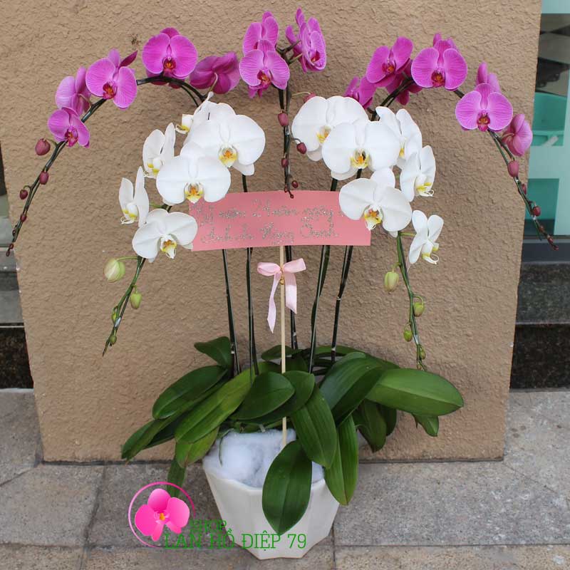 Chậu lan hồ điệp đẹp được phối ghép 5 cành hoa lan trắng tím với thiết kế sang trọng và đẹp mắt sẽ là món quà thật ý nghĩa để tặng cho bạn bè, người thân, khách hàng, đối tác... Sản phẩm rất phù hợp đặt ở bàn làm việc, trước sảnh văn phòng công ty, nhà hàng, khách sạn, cửa hàng. Ngoài ra hoa lan hồ điệp còn được tặng vào những dịp chúc mừng khai trương, sinh nhật, khánh thành, hội nghị, thăng chức, mừng thọ, ngày cưới, kỉ niệm thành lập công ty...
