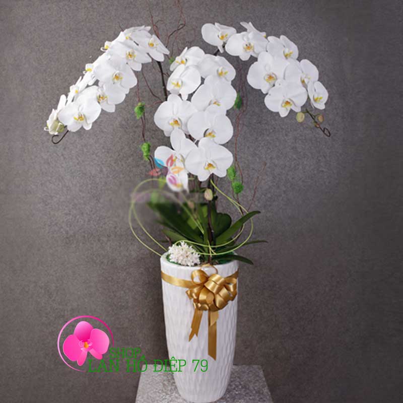 Chậu lan hồ điệp đẹp được phối ghép 3 cành hoa lan màu trắng với thiết kế sang trọng và đẹp mắt sẽ là món quà thật ý nghĩa để tặng cho bạn bè, người thân, khách hàng, đối tác... Sản phẩm rất phù hợp đặt ở bàn làm việc, trước sảnh văn phòng công ty, nhà hàng, khách sạn, cửa hàng. Ngoài ra hoa lan hồ điệp còn được tặng vào những dịp chúc mừng khai trương, sinh nhật, khánh thành, hội nghị, thăng chức, mừng thọ, ngày cưới, kỉ niệm thành lập công ty...