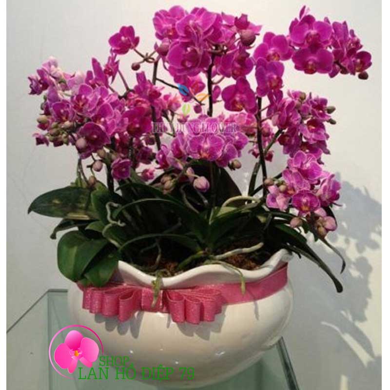 Chậu lan hồ điệp mini đẹp được phối ghép 10 cành hoa lan màu tím dạng hoa chùm rất nhiều bông, với thiết kế sang trọng và đẹp mắt sẽ là món quà thật ý nghĩa để tặng cho bạn bè, người thân, khách hàng, đối tác... Sản phẩm rất phù hợp đặt ở bàn làm việc, trước sảnh văn phòng công ty, nhà hàng, khách sạn, cửa hàng. Ngoài ra hoa lan hồ điệp còn được tặng vào những dịp chúc mừng khai trương, sinh nhật, khánh thành, hội nghị, thăng chức, mừng thọ, ngày cưới, kỉ niệm thành lập công ty...