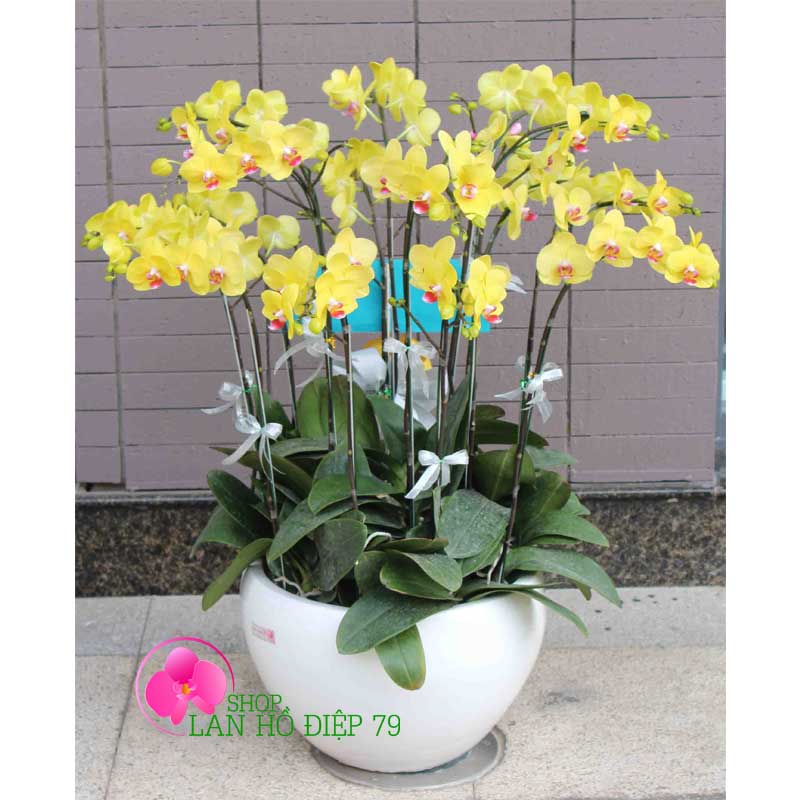 Chậu lan hồ điệp đẹp được phối ghép 12 cành hoa lan màu vàng với thiết kế sang trọng và đẹp mắt sẽ là món quà thật ý nghĩa để tặng cho bạn bè, người thân, khách hàng, đối tác... Sản phẩm rất phù hợp đặt ở bàn làm việc, trước sảnh văn phòng công ty, nhà hàng, khách sạn, cửa hàng. Ngoài ra hoa lan hồ điệp còn được tặng vào những dịp chúc mừng khai trương, sinh nhật, khánh thành, hội nghị, thăng chức, mừng thọ, ngày cưới, kỉ niệm thành lập công ty...