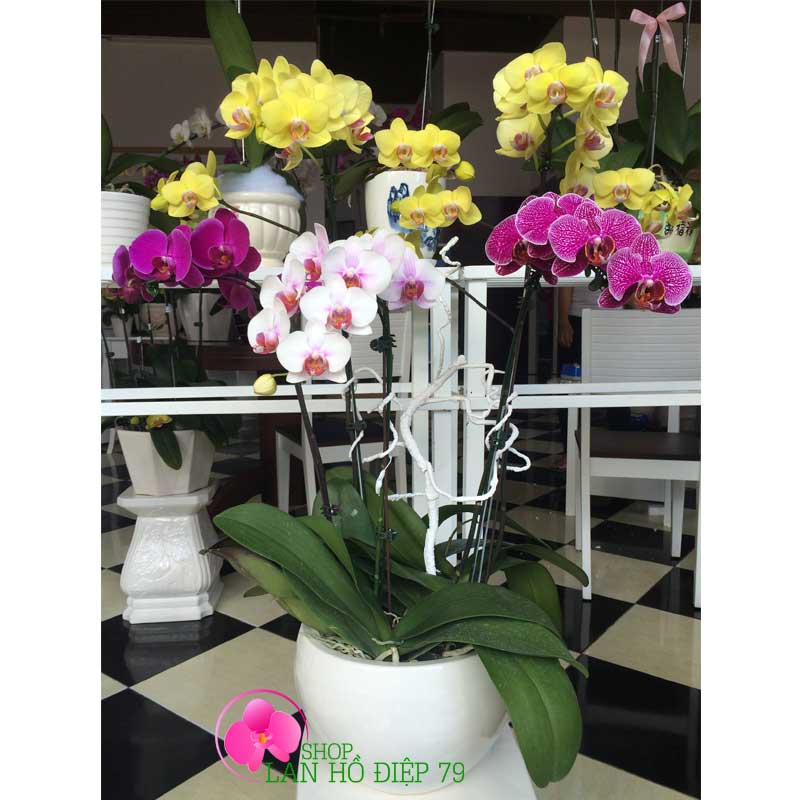 Chậu lan hồ điệp đẹp được phối ghép 7 cành hoa lan trắng, tím và vàng với thiết kế sang trọng và đẹp mắt sẽ là món quà thật ý nghĩa để tặng cho bạn bè, người thân, khách hàng, đối tác... Sản phẩm rất phù hợp đặt ở bàn làm việc, trước sảnh văn phòng công ty, nhà hàng, khách sạn, cửa hàng. Ngoài ra hoa lan hồ điệp còn được tặng vào những dịp chúc mừng khai trương, sinh nhật, khánh thành, hội nghị, thăng chức, mừng thọ, ngày cưới, kỉ niệm thành lập công ty...