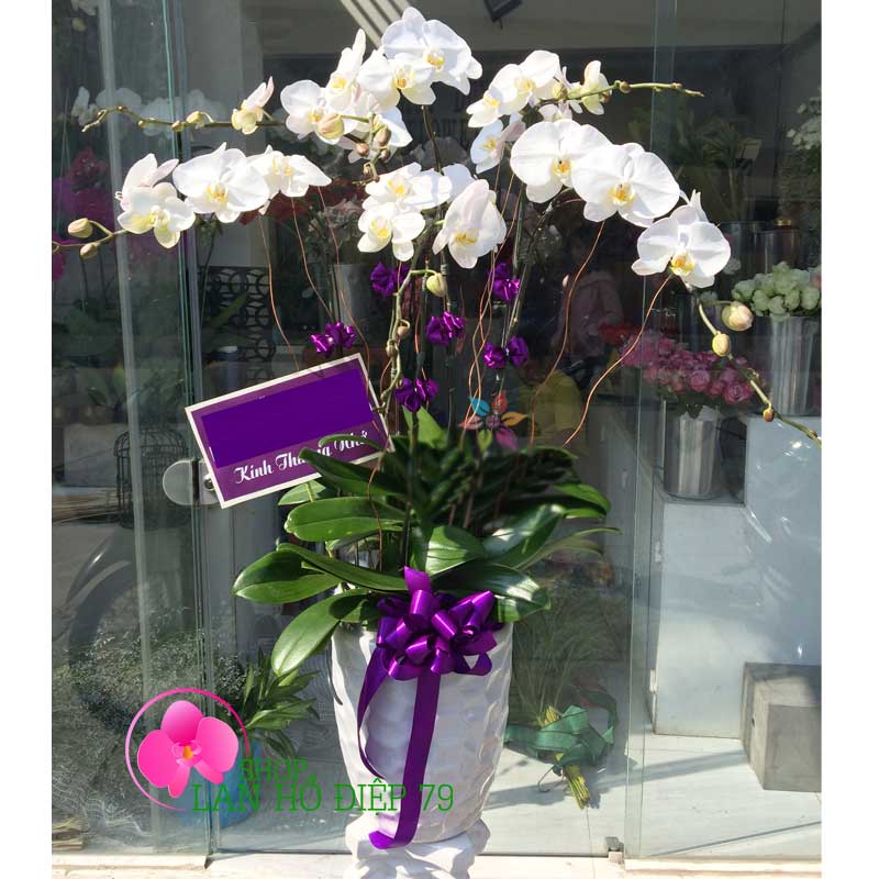 Chậu lan hồ điệp đẹp được phối ghép 6 cành hoa lan màu trắng với thiết kế sang trọng và đẹp mắt sẽ là món quà thật ý nghĩa để tặng cho bạn bè, người thân, khách hàng, đối tác... Sản phẩm rất phù hợp đặt ở bàn làm việc, trước sảnh văn phòng công ty, nhà hàng, khách sạn, cửa hàng. Ngoài ra hoa lan hồ điệp còn được tặng vào những dịp chúc mừng khai trương, sinh nhật, khánh thành, hội nghị, thăng chức, mừng thọ, ngày cưới, kỉ niệm thành lập công ty...