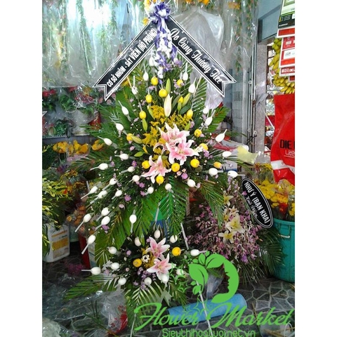 Thiết Kế Hoa Tươi Chia Buồn - Hoa Tang Lễ - Vòng Cườm Phúng Điếu