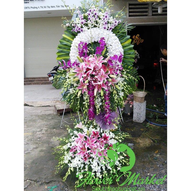 Hoa chia buồn đẹp cao từ 1,5m - 1,8m với hoa chủ đạo là hoa lan và hoa ly kết hợp với hoa lá phụ cùng phụ kiện cao cấp mang thông điệp chia buồn sâu sắc gửi đến thay cho lời động viên, an ủi đến gia quyến người mất và người đã khuất mong sớm được siêu thoát.