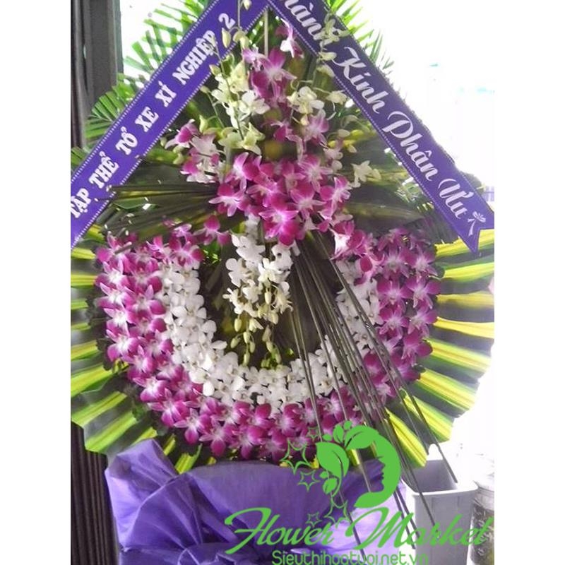 Hoa kính viếng cao từ 1,5m - 1,8m với hoa chủ đạo là hoa lan kết hợp với hoa lá phụ cùng phụ kiện cao cấp  mang thông điệp chia buồn sâu sắc gửi đến thay cho lời động viên, an ủi đến gia quyến người mất và người đã khuất mong sớm được siêu thoát. Trên...