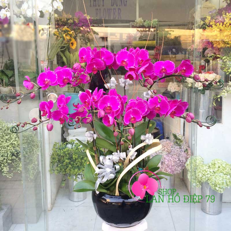 Chậu lan hồ điệp đẹp được phối ghép 8 cành hoa lan màu tím với thiết kế sang trọng và đẹp mắt sẽ là món quà thật ý nghĩa để tặng cho bạn bè, người thân, khách hàng, đối tác... Sản phẩm rất phù hợp đặt ở bàn làm việc, trước sảnh văn phòng công ty, nhà hàng, khách sạn, cửa hàng. Ngoài ra hoa lan hồ điệp còn được tặng vào những dịp chúc mừng khai trương, sinh nhật, khánh thành, hội nghị, thăng chức, mừng thọ, ngày cưới, kỉ niệm thành lập công ty...