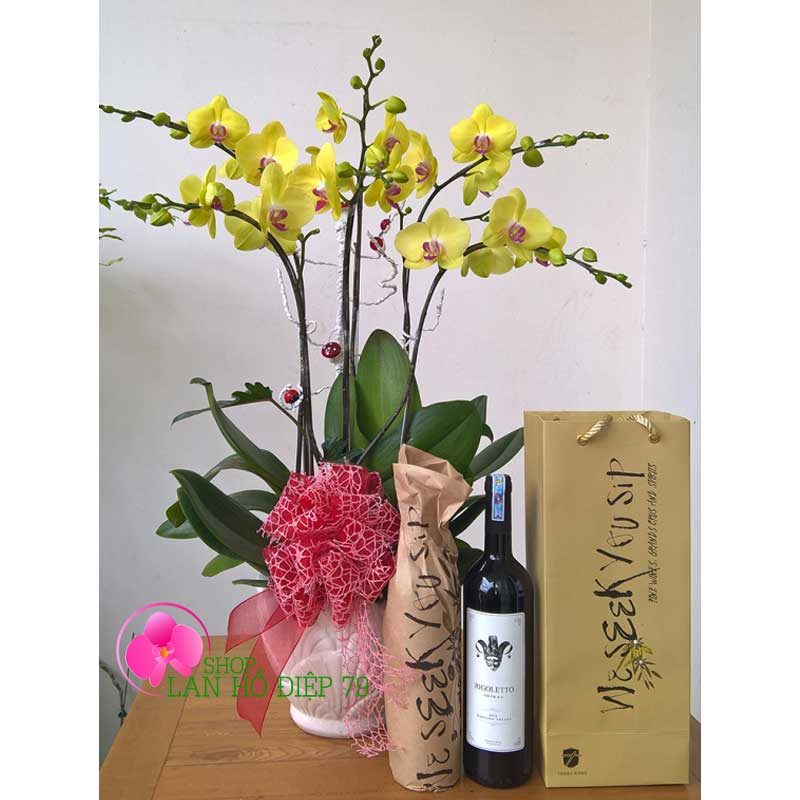 Chậu lan hồ điệp đẹp được phối ghép 5 cành hoa lan màu vàng với thiết kế sang trọng và đẹp mắt sẽ là món quà thật ý nghĩa để tặng cho bạn bè, người thân, khách hàng, đối tác... Sản phẩm rất phù hợp đặt ở bàn làm việc, trước sảnh văn phòng công ty, nhà hàng, khách sạn, cửa hàng. Ngoài ra hoa lan hồ điệp còn được tặng vào những dịp chúc mừng khai trương, sinh nhật, khánh thành, hội nghị, thăng chức, mừng thọ, ngày cưới, kỉ niệm thành lập công ty...