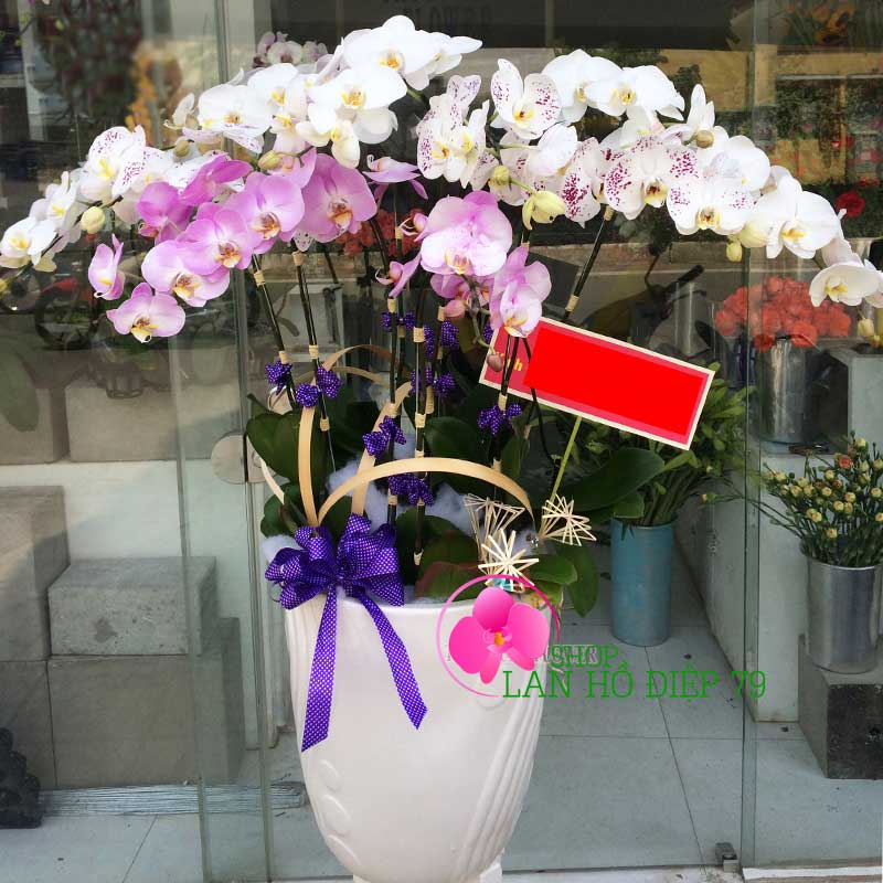Chậu lan hồ điệp đẹp được phối ghép 6 cành hoa lan trắng tím với thiết kế sang trọng và đẹp mắt sẽ là món quà thật ý nghĩa để tặng cho bạn bè, người thân, khách hàng, đối tác... Sản phẩm rất phù hợp đặt ở bàn làm việc, trước sảnh văn phòng công ty, nhà hàng, khách sạn, cửa hàng. Ngoài ra hoa lan hồ điệp còn được tặng vào những dịp chúc mừng khai trương, sinh nhật, khánh thành, hội nghị, thăng chức, mừng thọ, ngày cưới, kỉ niệm thành lập công ty...