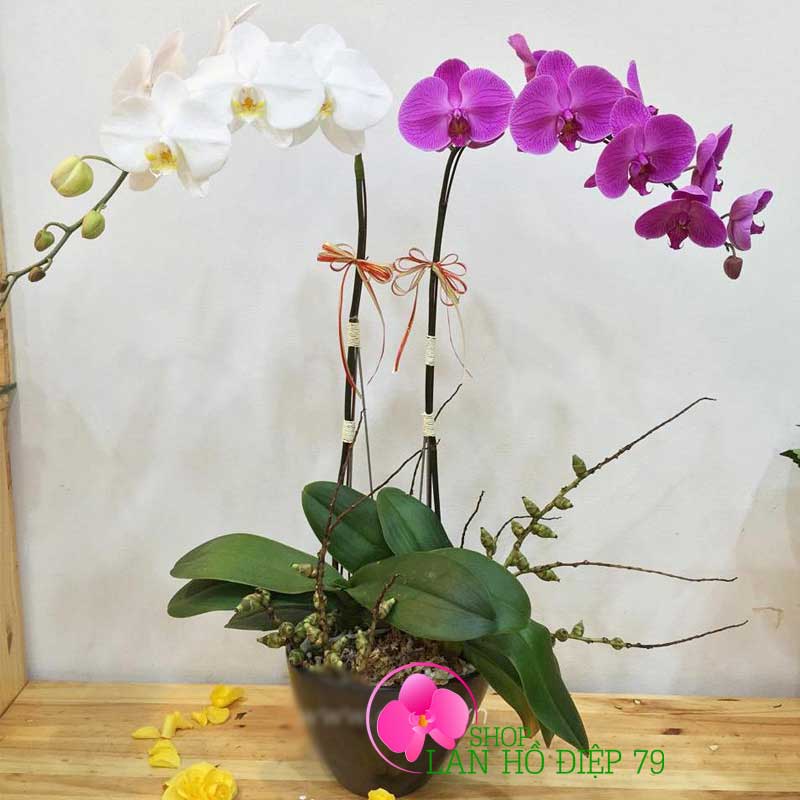 Chậu lan hồ điệp đẹp được phối ghép 2 cành hoa lan trắng tím với thiết kế sang trọng và đẹp mắt sẽ là món quà thật ý nghĩa để tặng cho bạn bè, người thân, khách hàng, đối tác... Sản phẩm rất phù hợp đặt ở bàn làm việc, trước sảnh văn phòng công ty, nhà hàng, khách sạn, cửa hàng. Ngoài ra hoa lan hồ điệp còn được tặng vào những dịp chúc mừng khai trương, sinh nhật, khánh thành, hội nghị, thăng chức, mừng thọ, ngày cưới, kỉ niệm thành lập công ty...