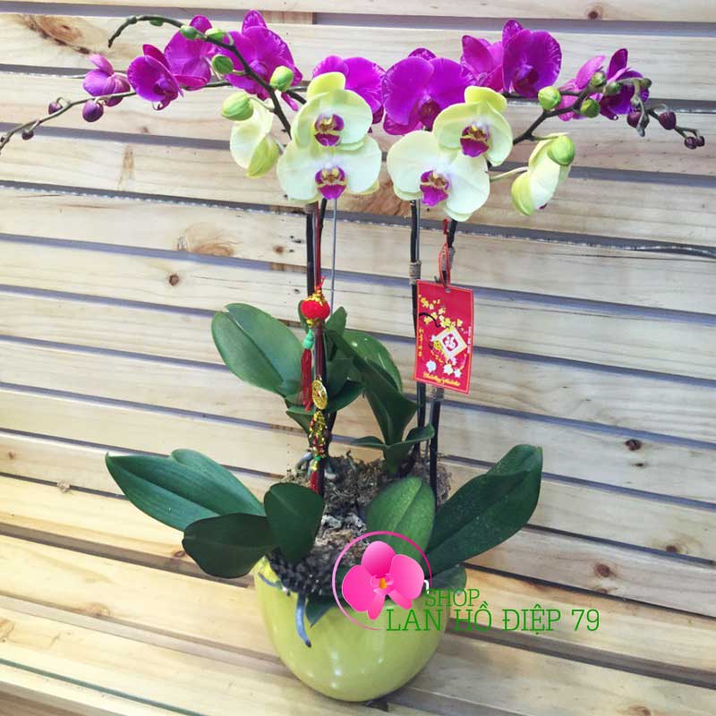 Chậu lan hồ điệp đẹp được phối ghép 4 cành hoa lan vàng tím với thiết kế sang trọng và đẹp mắt sẽ là món quà thật ý nghĩa để tặng cho bạn bè, người thân, khách hàng, đối tác... Sản phẩm rất phù hợp đặt ở bàn làm việc, trước sảnh văn phòng công ty, nhà hàng, khách sạn, cửa hàng. Ngoài ra hoa lan hồ điệp còn được tặng vào những dịp chúc mừng khai trương, sinh nhật, khánh thành, hội nghị, thăng chức, mừng thọ, ngày cưới, kỉ niệm thành lập công ty...