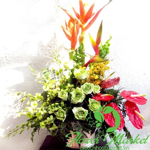 Về màu sắc, loại hoa, nguyên vật liệu cắm hoa phụ thuộc vào thời tiết và mùa màng trong năm nên thỉnh thoảng có sự thay đổi chút ít giữa mẫu trên website và thực tế. Tuy nhiên, chúng tôi sẽ liên lạc trước với Quý khách để xin ý kiến. Trường hợp không liên lạc được sieuthihoatuoi.net.vn sẽ chủ động thay thế bằng một loại hoa hay nguyên vật liệu phù hợp khác nhưng vẫn đảm bảo ý nghĩa và tính mỹ quan của sản phẩm.