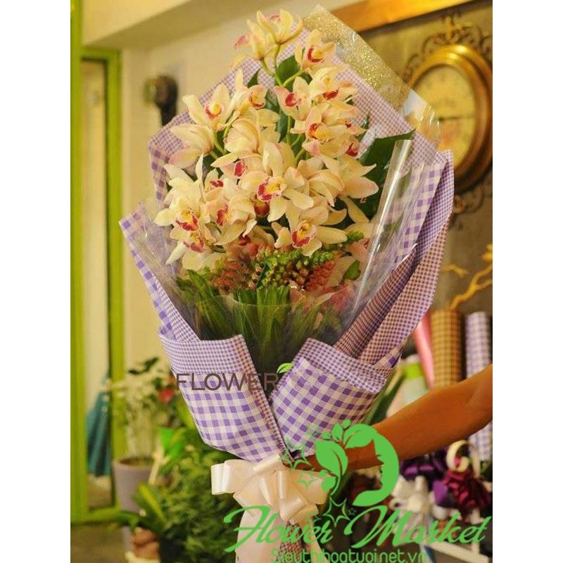 Hoa chúc mừng ngày quốc tế phụ nữ 8/3 với hoa chủ đạo là hoa lan kết hợp với hoa lá phụ cùng phụ kiện trang trí cao cấp, kèm lời nhắn thông điệp yêu thương gởi đến những người thân yêu nhất !