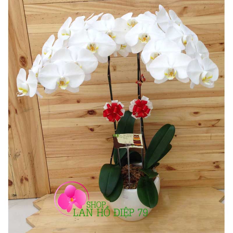 Chậu lan hồ điệp đẹp được phối ghép 2 cành hoa lan màu trắng với thiết kế sang trọng và đẹp mắt sẽ là món quà thật ý nghĩa để tặng cho bạn bè, người thân, khách hàng, đối tác... Sản phẩm rất phù hợp đặt ở bàn làm việc, trước sảnh văn phòng công ty, nhà hàng, khách sạn, cửa hàng. Ngoài ra hoa lan hồ điệp còn được tặng vào những dịp chúc mừng khai trương, sinh nhật, khánh thành, hội nghị, thăng chức, mừng thọ, ngày cưới, kỉ niệm thành lập công ty...