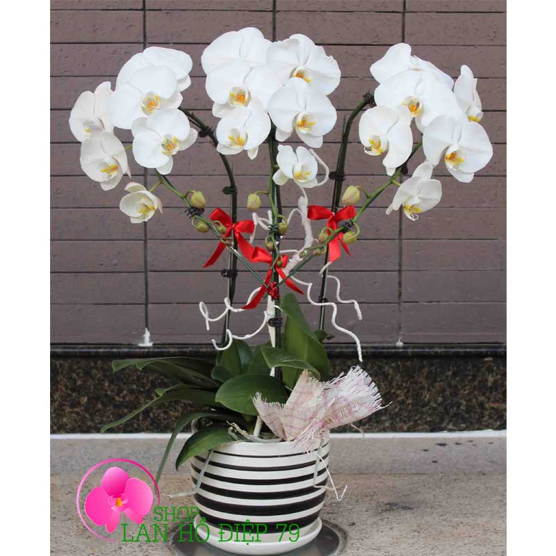 Chậu lan hồ điệp đẹp được phối ghép 3 cành hoa lan màu trắng với thiết kế sang trọng và đẹp mắt sẽ là món quà thật ý nghĩa để tặng cho bạn bè, người thân, khách hàng, đối tác... Sản phẩm rất phù hợp đặt ở bàn làm việc, trước sảnh văn phòng công ty, nhà hàng, khách sạn, cửa hàng. Ngoài ra hoa lan hồ điệp còn được tặng vào những dịp chúc mừng khai trương, sinh nhật, khánh thành, hội nghị, thăng chức, mừng thọ, ngày cưới, kỉ niệm thành lập công ty...