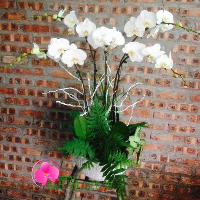 Chậu lan hồ điệp đẹp được phối ghép 5 cành hoa lan màu trắng với thiết kế sang trọng và đẹp mắt sẽ là món quà thật ý nghĩa để tặng cho bạn bè, người thân, khách hàng, đối tác... Sản phẩm rất phù hợp đặt ở bàn làm việc, trước sảnh văn phòng công ty, nhà hàng, khách sạn, cửa hàng. Ngoài ra hoa lan hồ điệp còn được tặng vào những dịp chúc mừng khai trương, sinh nhật, khánh thành, hội nghị, thăng chức, mừng thọ, ngày cưới, kỉ niệm thành lập công ty...